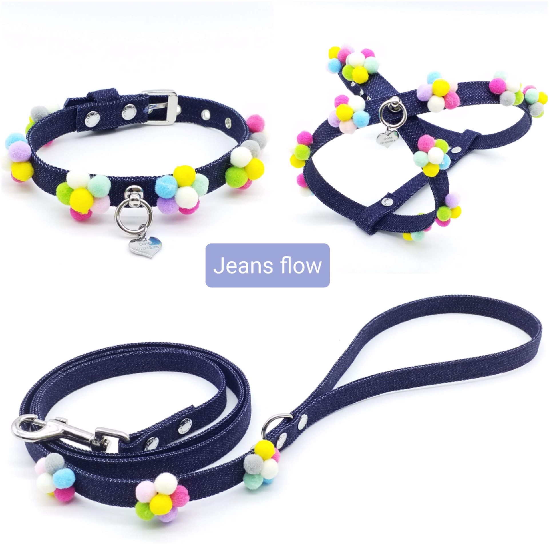 il Collare la pettorina ed il guinzaglio sono realizzati a mano e su richiesta in tessuto Jeans altezza 1,2 cm Ideale per cani di piccola taglia. controlla le disponibilità per effettuare l'ordine. puoi scegliere anche un solo accessorio per il tuo cagnolino. Il guinzaglio è lungo 120 cm e il moschettone e la metalleria sono come in foto.