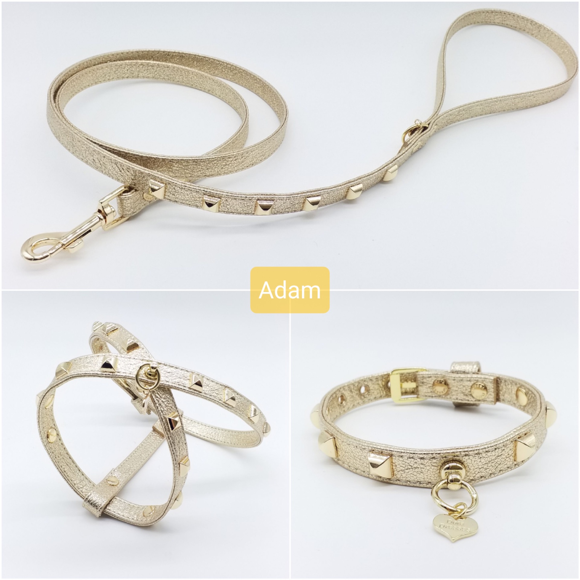 il Collare la pettorina ed il guinzaglio sono realizzati a mano e su richiesta in ecopelle puo' essere realizzato con ecopelle lucida ( verniciato) oppure ecopelle opaco ( satinato) altezza 1,2 cm Ideale per cani di piccola taglia. controlla le disponibilità per effettuare l'ordine. puoi scegliere anche un solo accessorio per il tuo cagnolino. Il guinzaglio è lungo 120 cm e il moschettone e la metalleria sono come in foto