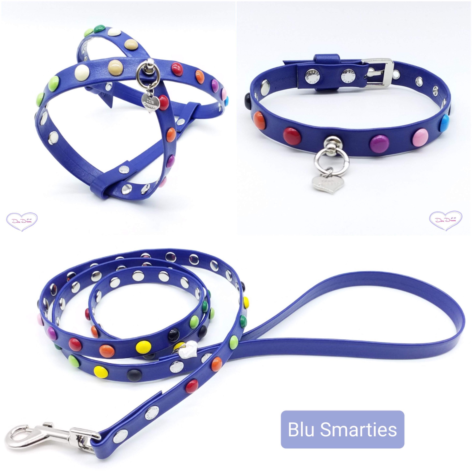 il Collare la pettorina ed il guinzaglio sono realizzati a mano e su richiesta in ecopelle puo' essere realizzato con ecopelle lucida ( verniciato) oppure ecopelle opaco ( satinato) altezza 1,2 cm Ideale per cani di piccola taglia. controlla le disponibilità per effettuare l'ordine. puoi scegliere anche un solo accessorio per il tuo cagnolino. Il guinzaglio è lungo 120 cm e il moschettone e la metalleria sono come in foto