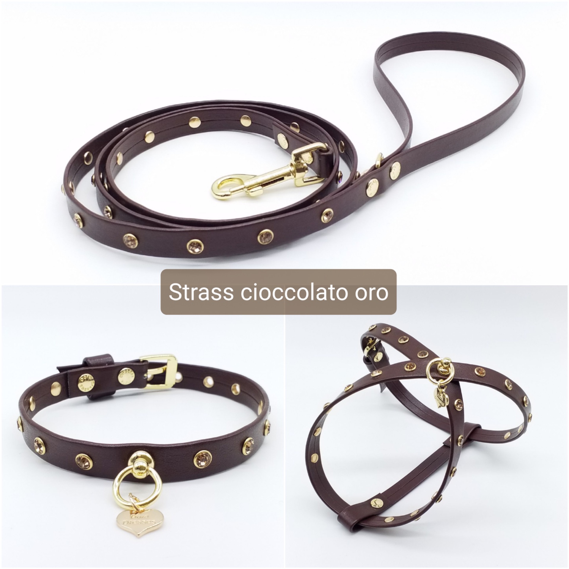 il Collare la pettorina ed il guinzaglio sono realizzati a mano e su richiesta in ecopelle puo' essere realizzato con ecopelle lucida ( verniciato) oppure ecopelle opaco ( satinato) altezza 1,2 cm Ideale per cani di piccola taglia. controlla le disponibilità per effettuare l'ordine. puoi scegliere anche un solo accessorio per il tuo cagnolino. Il guinzaglio è lungo 120 cm e il moschettone e la metalleria sono come in foto